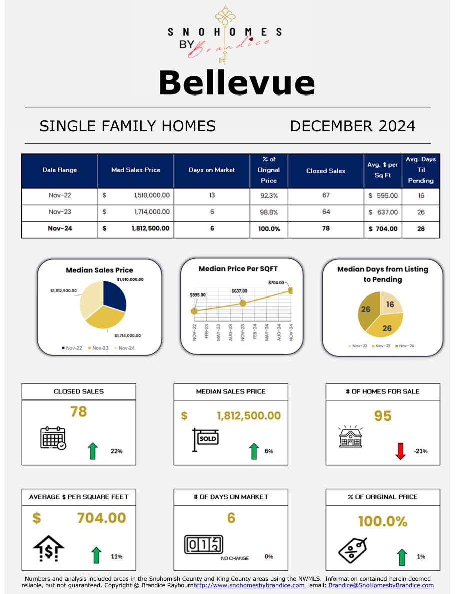 Overall, Bellevue ended the year in a strong position with rising prices, quick sales, and continued demand from buyers.