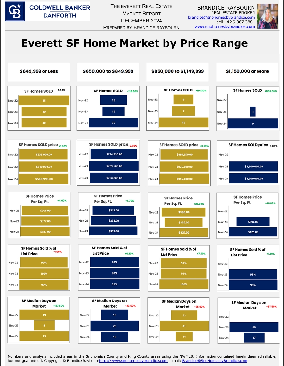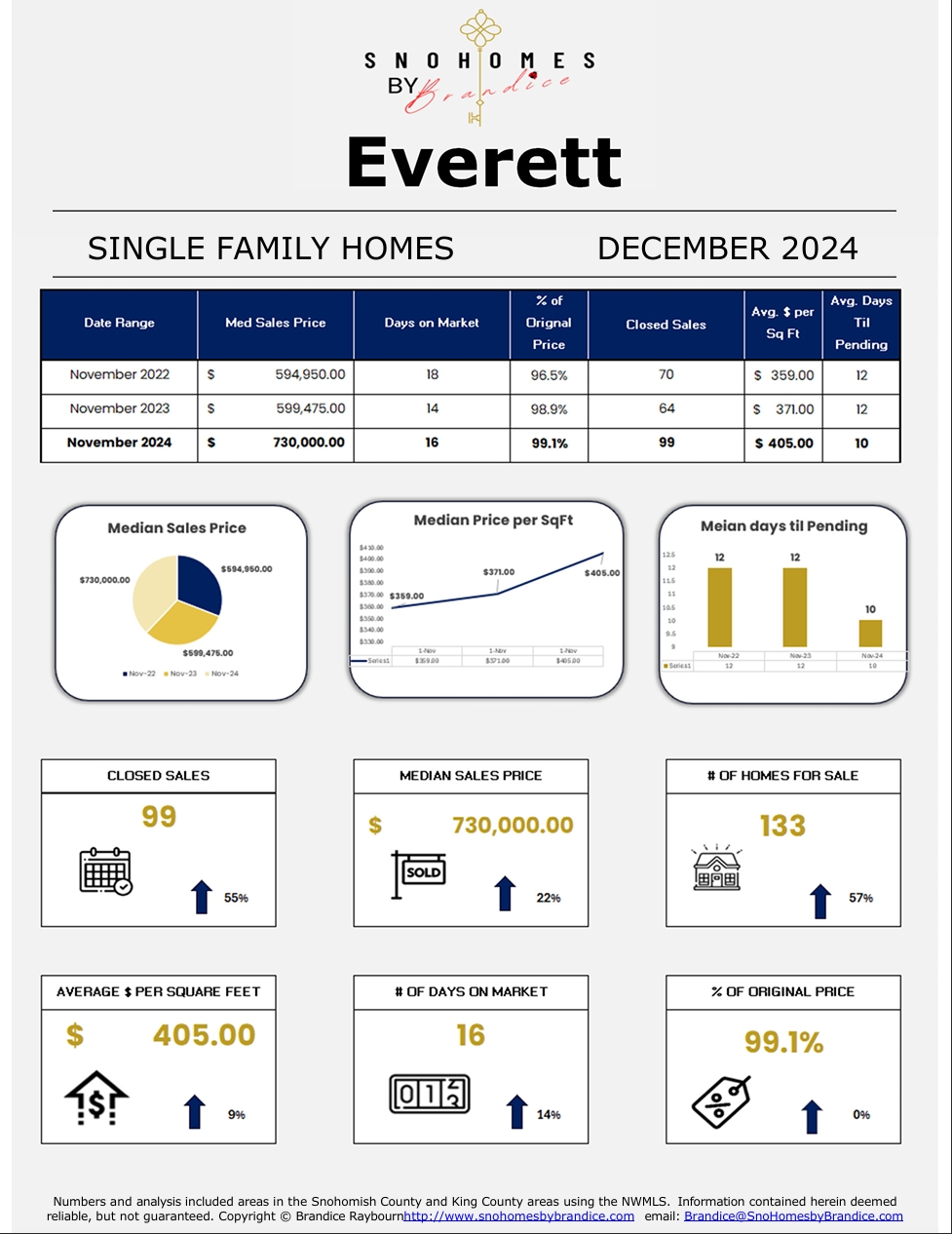 Below is a snapshot of what happened in the Everett housing market for single family homes in December 2024, reflecting activity from November 2024 compared with the previous year.