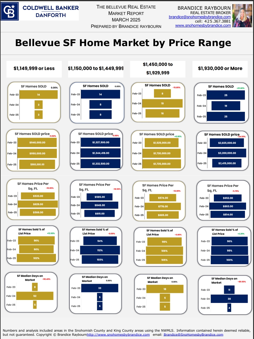In the $1.45M to $1.93M range, the market remained strong with buyers continuing to compete for desirable properties. This range often attracts move up buyers relocating within Bellevue.