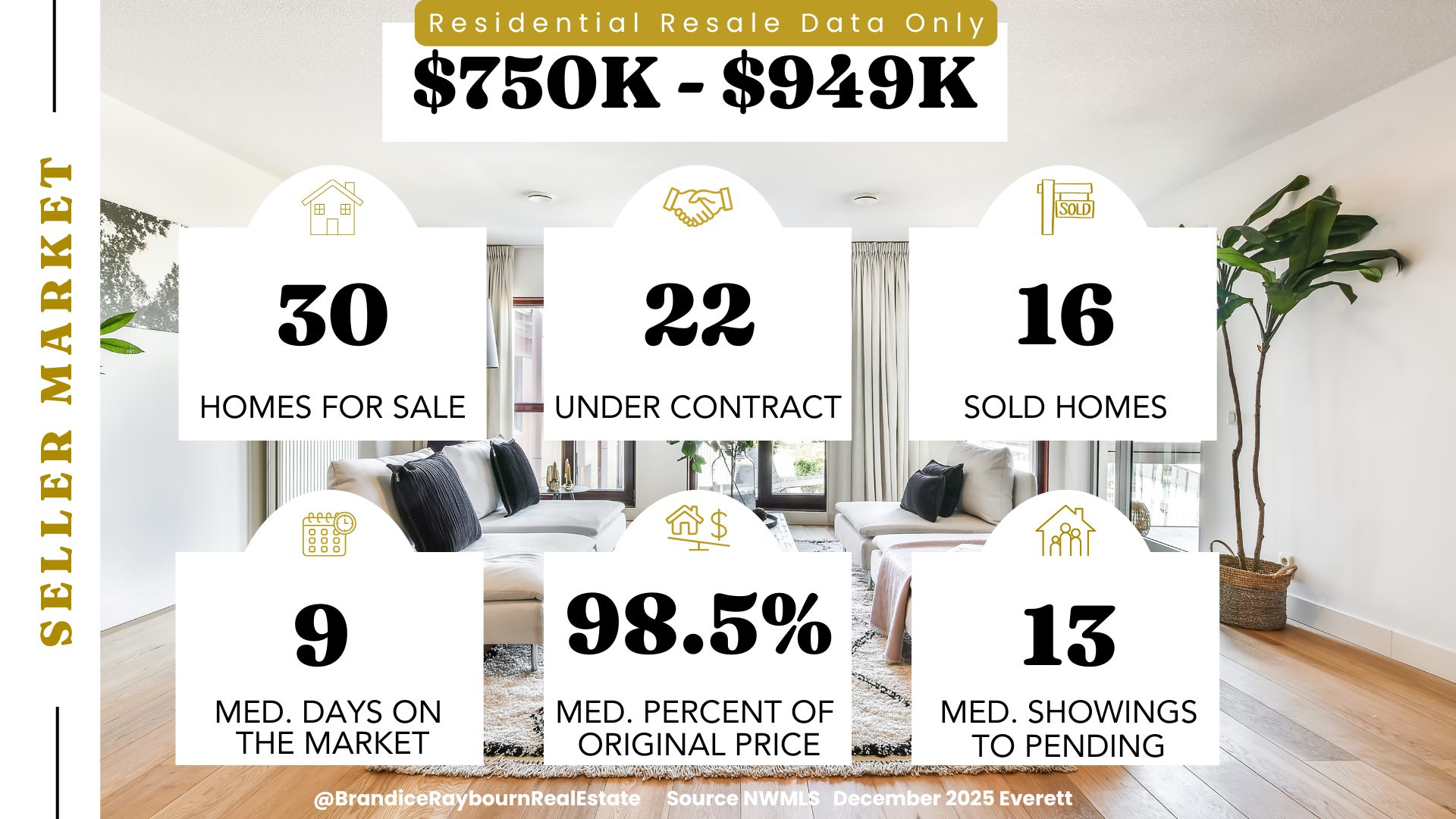 The 750K to 949K range is one of Everett’s strongest performers right now. Inventory is tight and the homes that do come up are usually move in ready. Buyers are motivated and decisive in this range because they know options are limited. This price point stays competitive, moves quickly, and keeps sellers in a solid position.